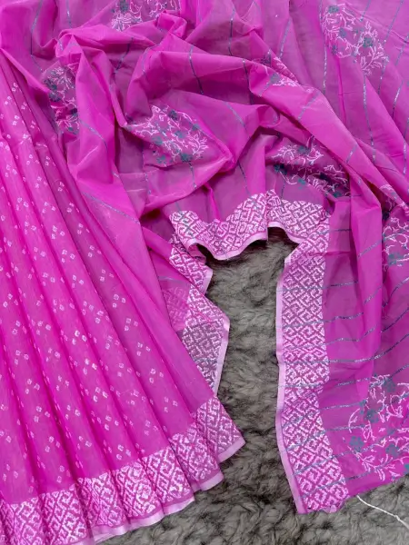 মাত্র ১০০০ টাকায় হাফ সিল্ক ব্লক প্রিন্ট চুমকি শাড়ি 🔥