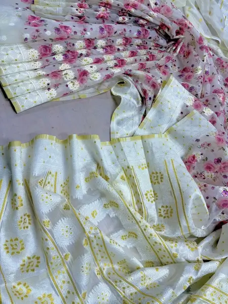 14 hands long saree with matching running blouse piece.